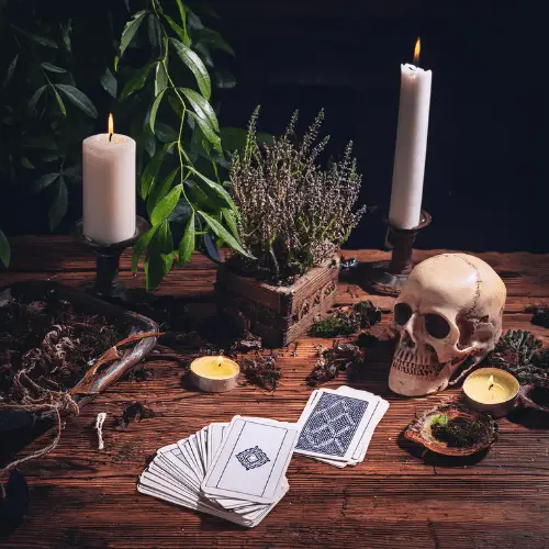 - Uso de altares, velas, fotos y amuletos.