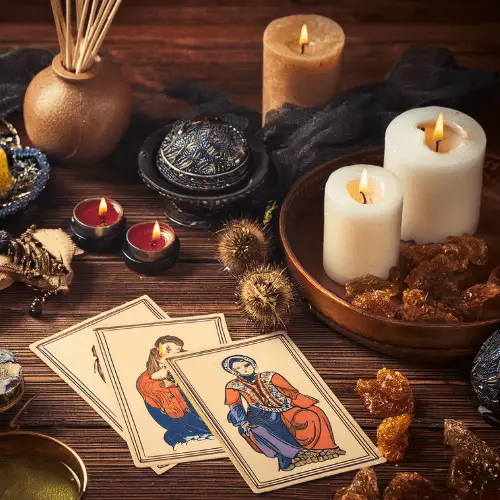 - Uso de altares, velas, fotos y amuletos.